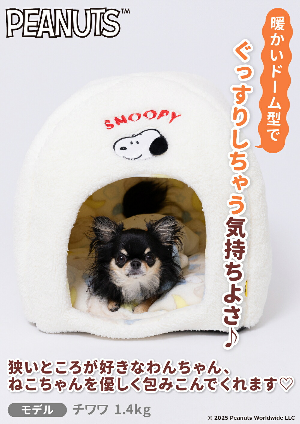 スヌーピー雲柄ボアドームベッド