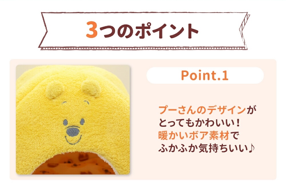 【3点購入で10%OFF】プーさんフェイスボアドームベッド