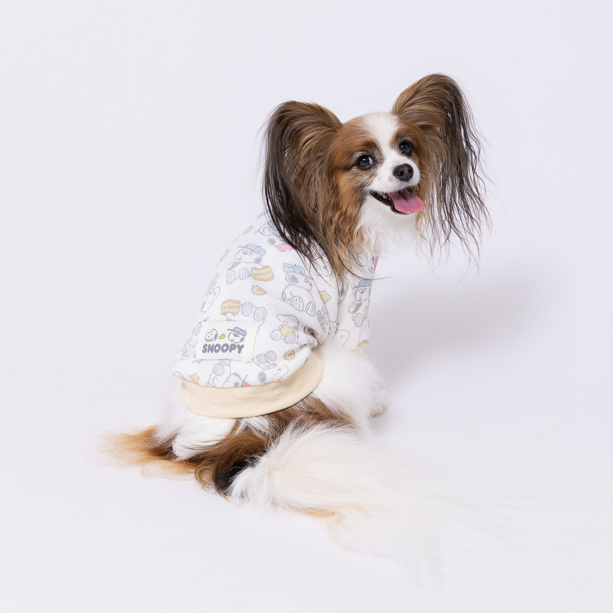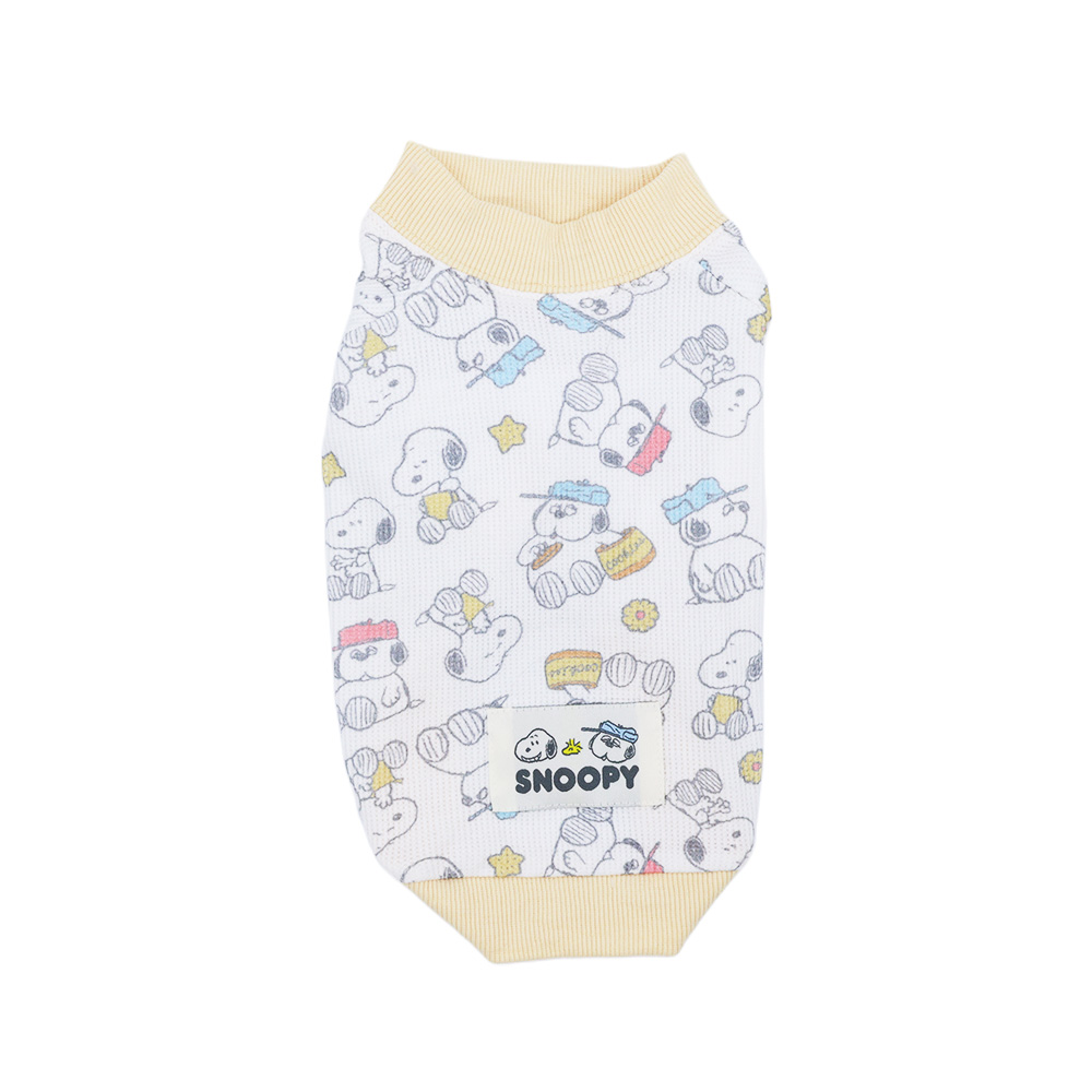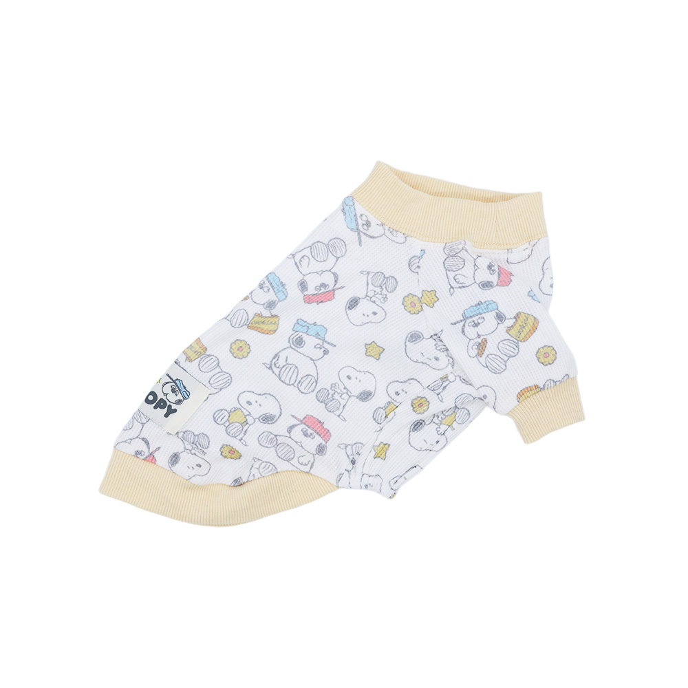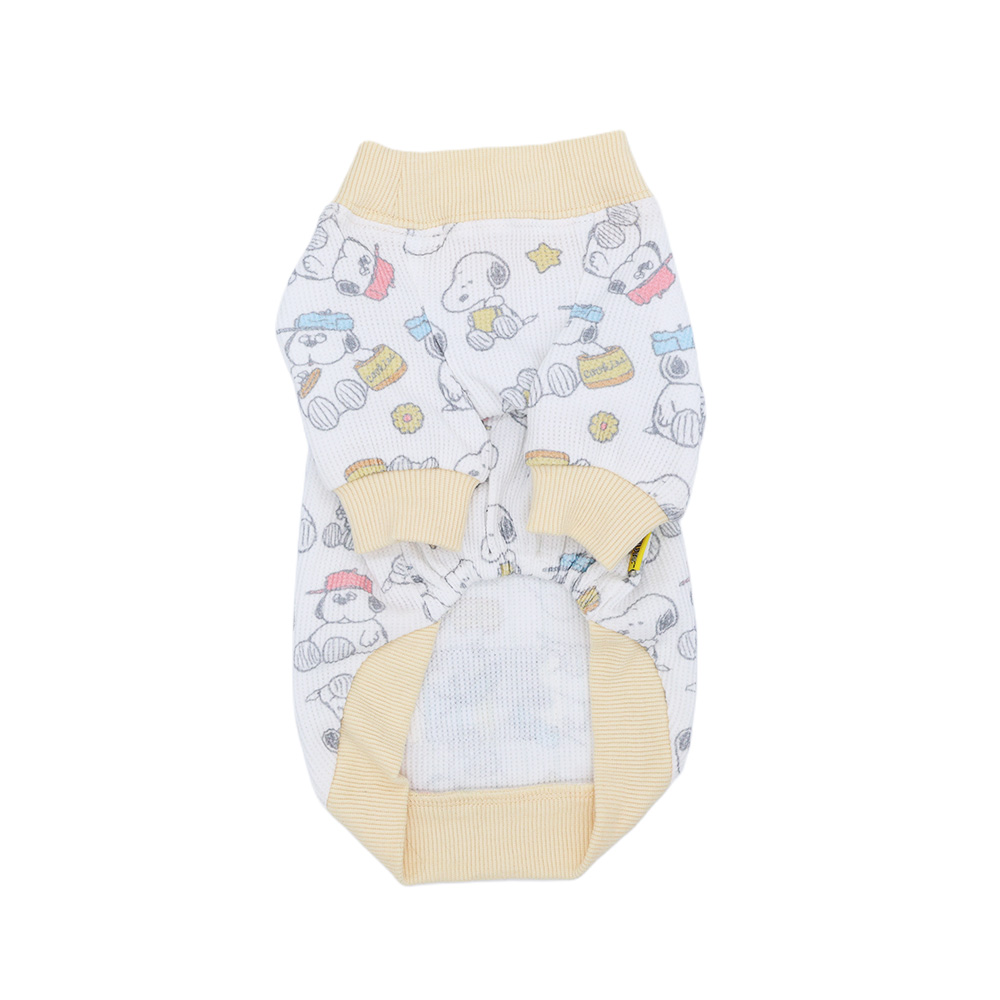 スヌーピーよりワッフル素材のロンパースが登場しました! 伸縮性のあるカットソー素材!お散歩着に、お部屋着に最適です♪