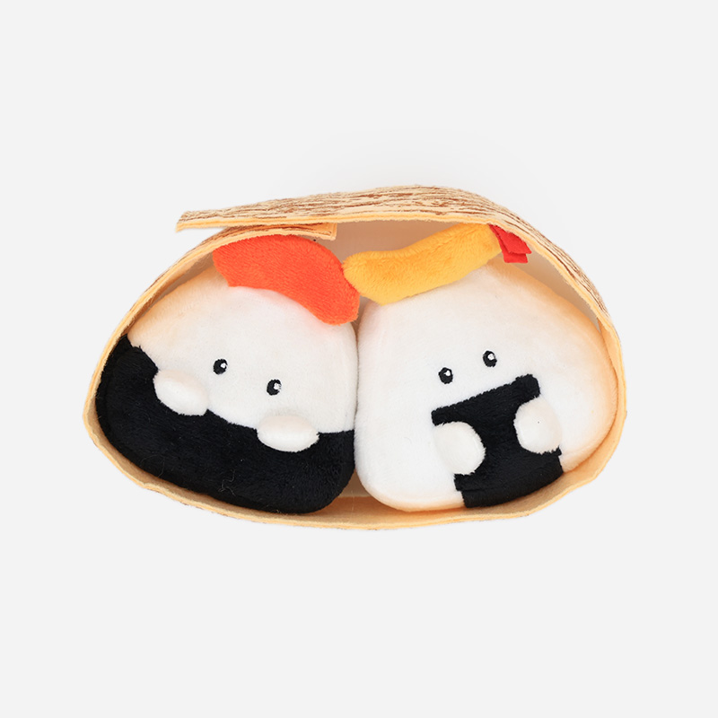 ぎゅっとおにぎりさんお弁当セット♪お弁当箱、竹皮もかしゃかしゃ遊べるおもちゃ♪