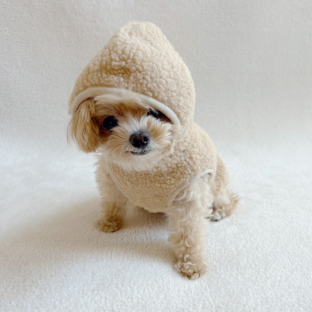 軽くて、保温性に優れたボア素材で、フード付きパーカー