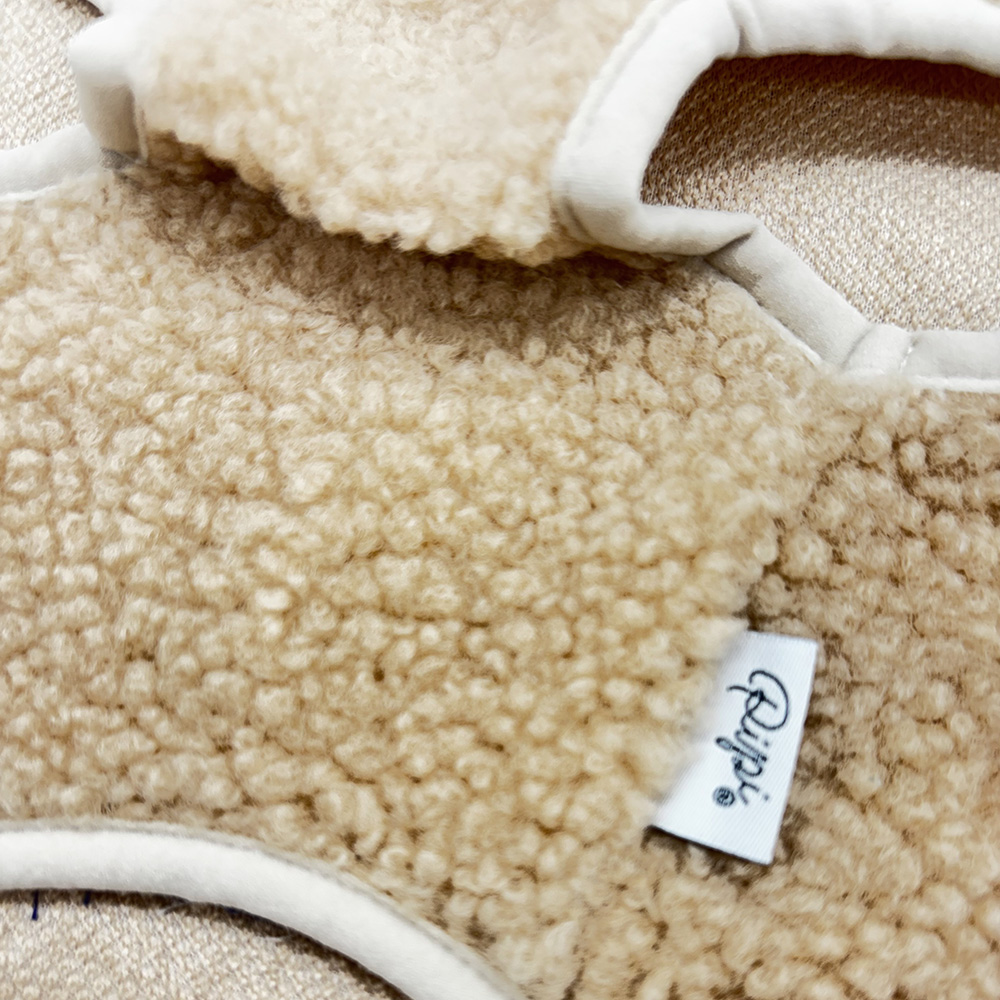 伸縮姓のある素材のため着脱も簡単に行えます。背中に、リードを通せる穴が開いています!
